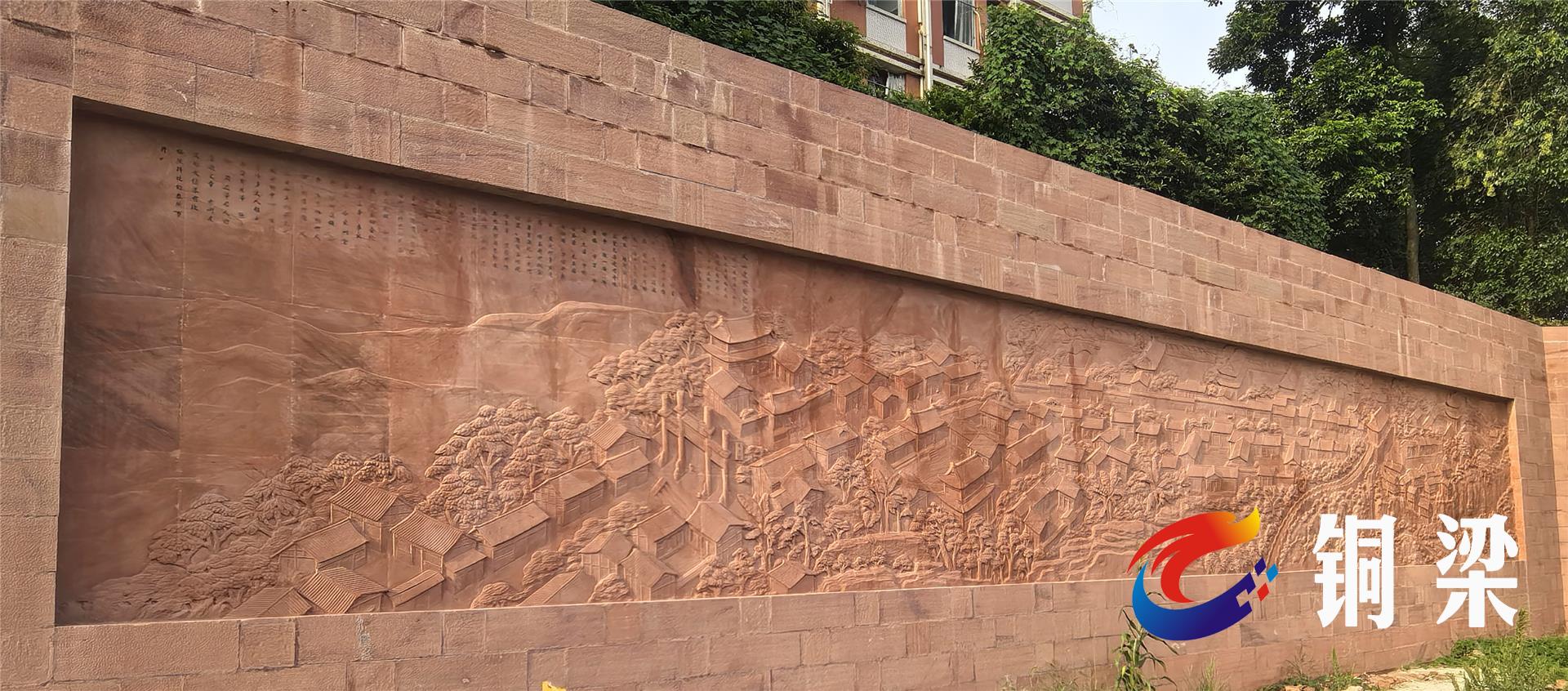 近日,在銅梁城區(qū)民主路西門老街入口處,一幅大型石雕再現(xiàn)了這條百年老街的歷史。在這幅長(zhǎng)15米、高5米的石壁上,雕刻了莊重的城門城墻、古
